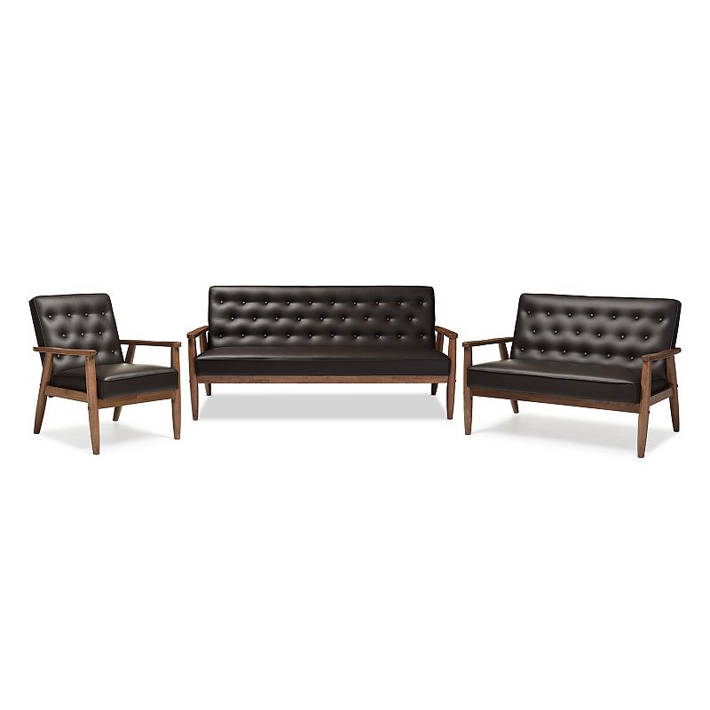 Related Product Baxton Studio Sorrento Mid-Century Modern Living Room 3-piece Set, Dark Brown